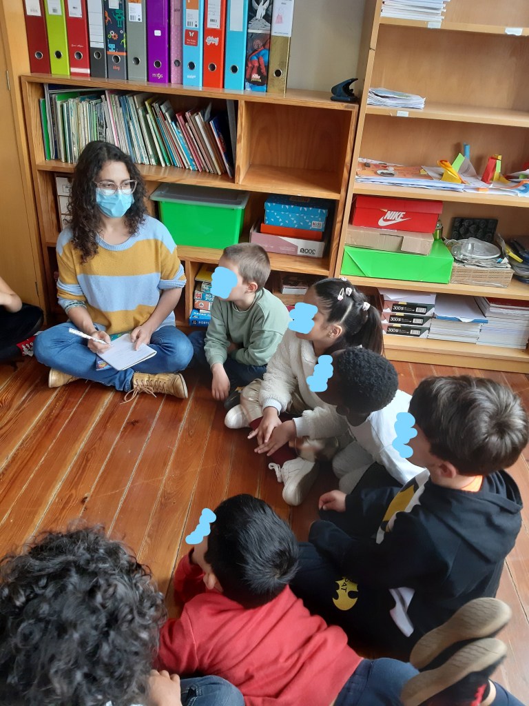 Iniciámos este projeto com uma pergunta: o que é uma imagem? A forma como conduzi a conversa que se desenvolveu foi com a postura de quem observa e regista; no entanto, de vez em quando retribuía perguntas reformuladas com base naquilo que as crianças diziam. Tentei seguir a via filosófica que aprendi com a Joana da filocriatividade.