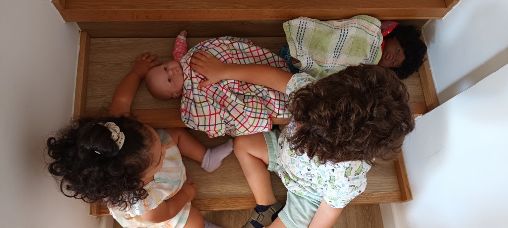 Por querer contrariar esses pré conceitos e por desejar que ambos os meus filhos, cada um nascido com um sexo biológico diferente, tenha o mais variado tipo de experiências nas suas brincadeiras, faço por expô-los a contextos, objetos e situações diferentes. Nunca irei esquecer o rosto de admiração de algumas pessoas quando o meu filho recebeu uma boneca no Natal ou quando dissemos que lhe íamos arranjar uma cozinha de brincar.